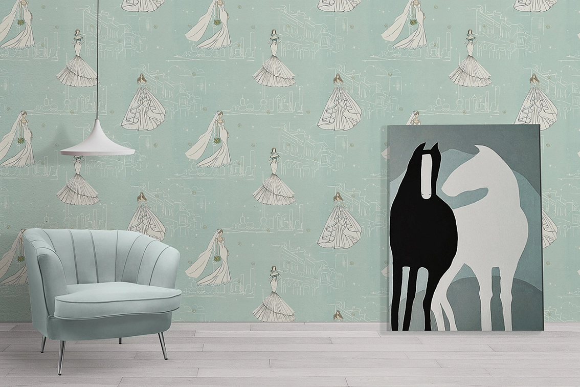 Зеленый цвет обоев создаст ощущение свежести и спокойствия, что особенно важно для детского пространства. Мотив невесты Jolly придаст комнате загадочности и загадочности, погружая ребенка в волшебный мир фантазии. Раппорт в 64 позволит равномерно распределить узор на стене, создавая единый и гармоничный образ.